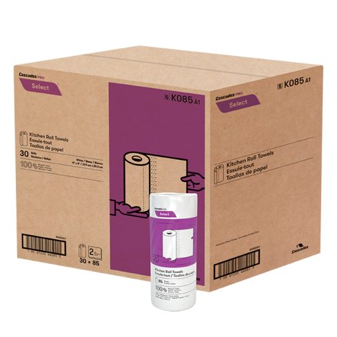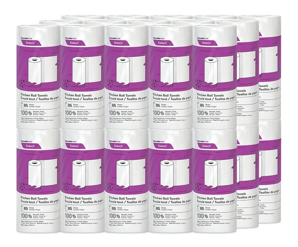 Cascades PRO Select® Kitchen Roll Towels provide an exceptional combination of quality and softness. These 100% recycled fibre 2-ply towels are not just soft but also strong enough to clean up the tough messes. Convenient and respectful of the environment, these towels meet EPA standards. Each roll contains 80 sheets of 2-ply recycled white paper, providing an efficient solution for everyday kitchen and cleaning needs. Choose these towels for exceptional performance, optimal convenience and a contribution to sustainable practices in every space. Suitable for industrial and municipal composting facilities, but not for home composting.