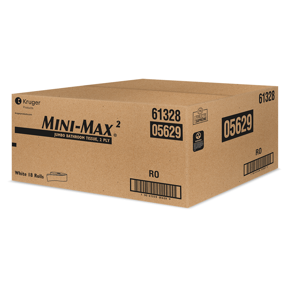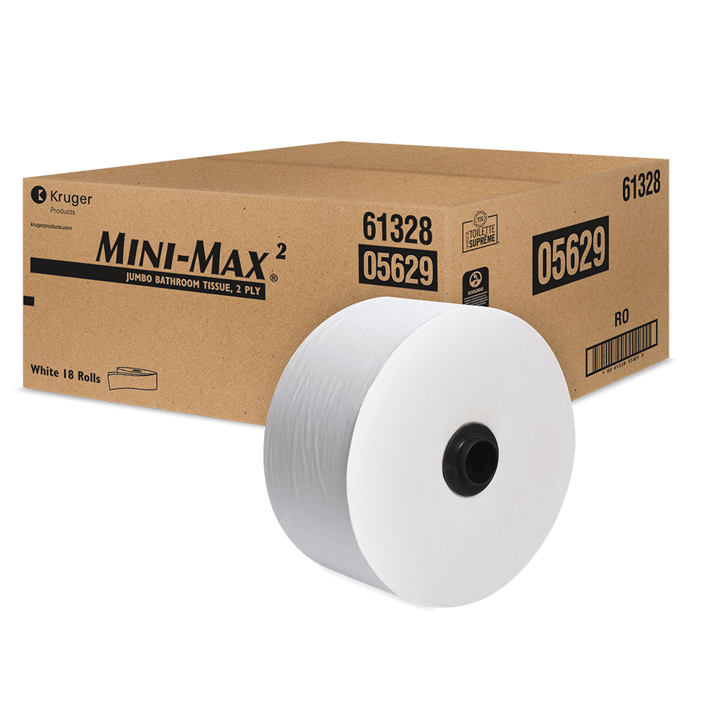 Part of the Ultimate Washroom™ portfolio. Premium quality 2-Ply Mini-Max®2 systems bathroom tissue. 750 foot roll makes it ideal for high traffic washrooms as it reduces the risk of runouts and saves on service time. High capacity rolls held in a space saving compact design. Made with 100% recycled fibre and at least 88% post-consumer content. Biodegradable and formulated to be safe to use in septic systems that are properly sized and maintained.